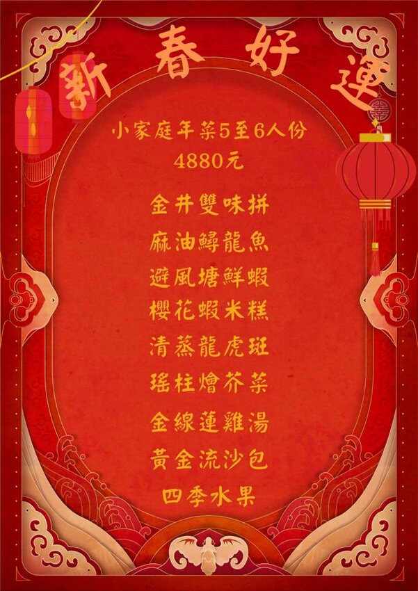 金井山泉農莊餐點很多元,在過年期間只有限定版的春節套餐,只有分人數來選擇小家庭或10人份餐點。