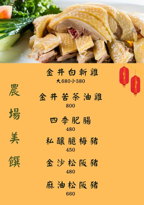 金井山泉農莊有個假日菜單,初六後就恢復正常,以平日菜單為主。