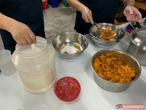 工作人員給我們兩種品種的地瓜&地瓜粉