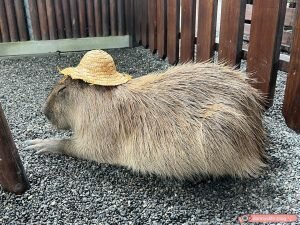 水豚君懶洋洋地趴在地上睡覺超可愛!