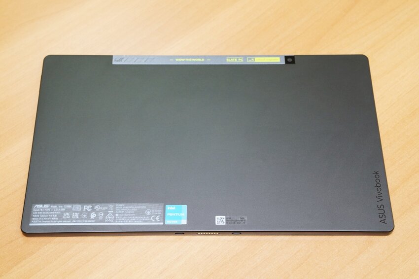 機身背面右上方有攝影機。底部有轉軸孔、對接連接埠,供外接磁吸鍵盤使用。