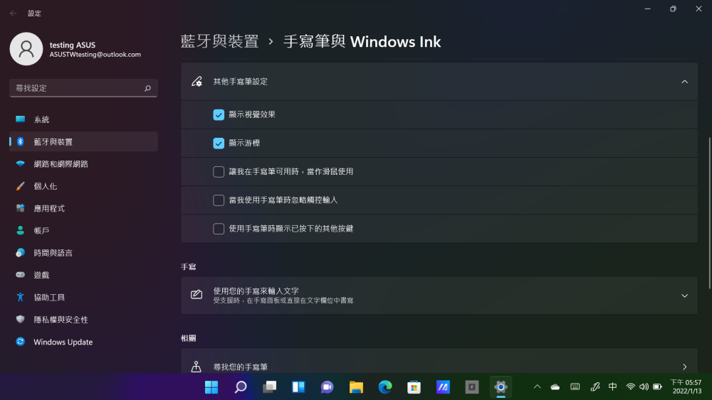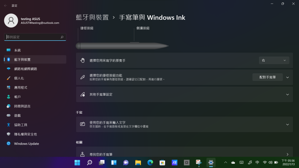 按下 ASUS Pen 2.0 觸控筆頂部,將筆與 ASUS Vivobook 13 Slate OLED 進行藍牙配對後,有特別的觸控筆使用偏好,都可做細部的觸控筆設定。