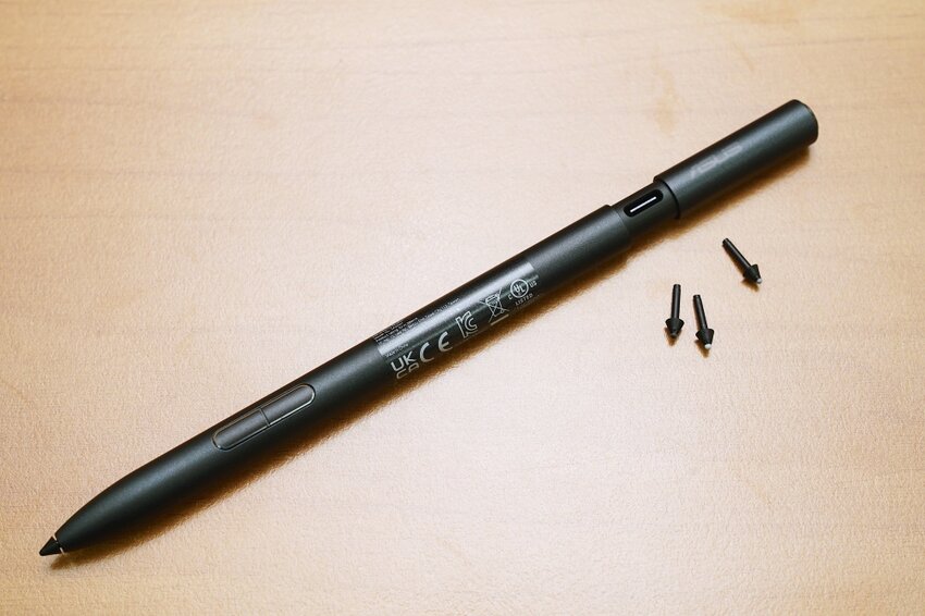 ASUS Pen 2.0 觸控筆附贈四種筆尖 2H, H, HB, B 可以替換,分別代表不同的硬度與摩擦力,在創作、工作、休閒娛樂的應用上都能轉換自如,我個人比較喜歡,也非常適合上課要做筆記的學生族群,或是有習慣手寫紀錄、繪圖的人。觸控筆不用另裝電池,是以 USB Type-C充電,30分鐘即可充滿電力,並可使用140小時,筆身的兩顆按鈕一顆相當於滑鼠右鍵,另一顆相當於橡皮擦功能。