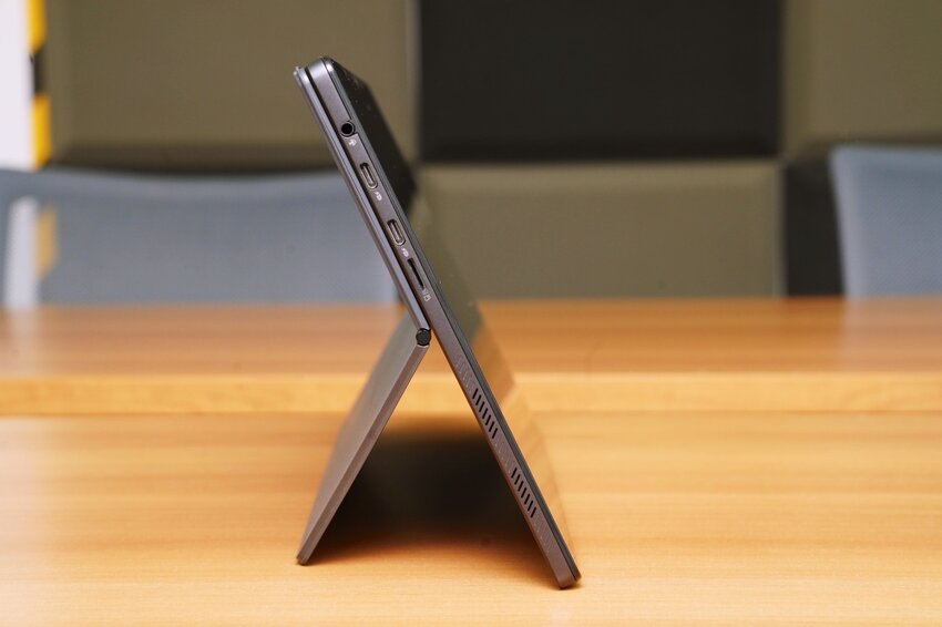 機身的左側邊有:2x USB 3.2 Gen 2 Type-C 支援顯示/供電、3.5mm 複合式音源線插孔、MicroSD 讀卡機,配置齊備。若有其他外接裝置需求,可額外購買集線器。