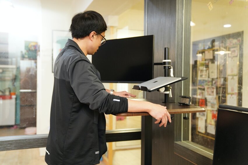 升降桌可在 74-113 公分之間穩定升降,工作時想坐就坐,想站就站,視體能與心情調整,沒時間運動的人,不妨規律執行站坐交替的辦公模式,每天執行 2 小時站著工作,能有效增加運動量。