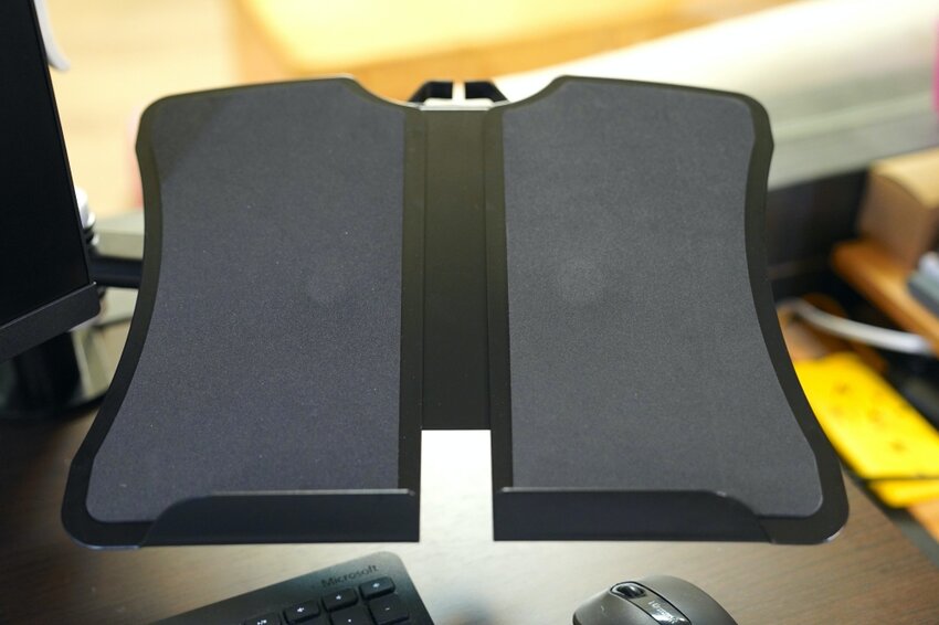 筆電支架擴充組是在原有的螢幕支架再接再接一組支架,以及筆電/平板兩用托盤擴充設備,完全不用受限工作桌比較小。因為主要設備都被支撐固定,桌面上便有更多空間使用、放置其他物品