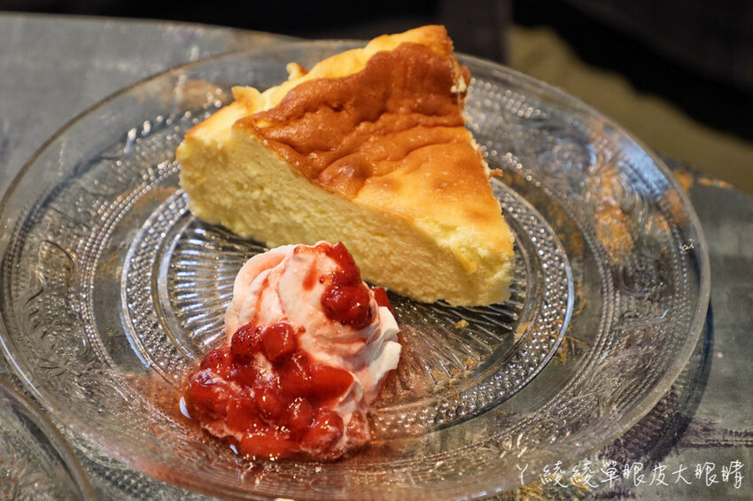 巴斯克蛋糕經典不敗的巴斯克蛋糕有著滿滿的濃郁香氣,軟嫩口感入口即化,不過吃起來比一般的巴斯克蛋糕還要鬆散些,至於旁邊的鮮奶油上頭有香甜的草莓丁和草莓果醬,沒想到還有添加一點酒,好好吃唷~(未滿十八歲請勿喝酒,喝酒不開車)