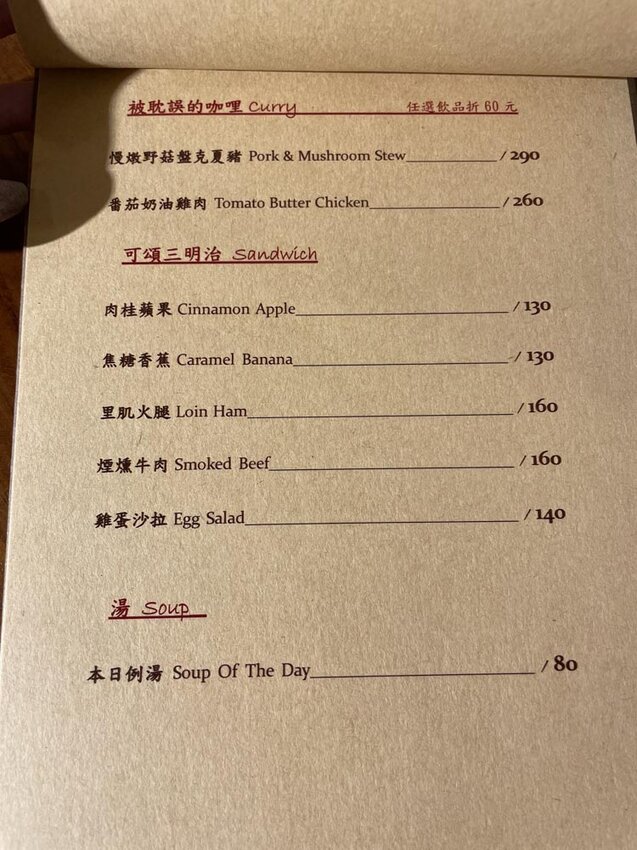 ➡ 內用低消一杯飲品或一份咖哩飯