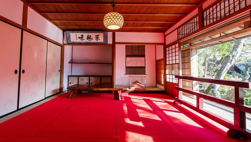 雖然我們去的「淨土苑」沒有楓葉,但乘著陽光而坐,看著苑外的日式庭園,即便閉上雙眼都能想像楓紅時節,那紅通通的夢幻場景。