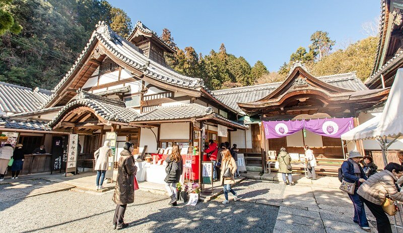 按照慣例先來看看楊谷寺的地理位置,它位於奈良、平安時代曾是日本首都的長岡京市,附近的長岡寺天滿宮的杜鵑那也是大大有名。楊谷寺的交通可以搭乘阪急京都線在「西山天王山」站下車,或是搭乘JR新幹線在長岡京站下車,都有巴士可以連結,不過下了巴士還是得走上一段路就是了。總之,除了自駕有一點小麻煩,這才有了「遠得要命的楊谷寺」之稱。詳細的交通我們文章最後再加以說明。對了,最快的方法當然是叫「小黃」。