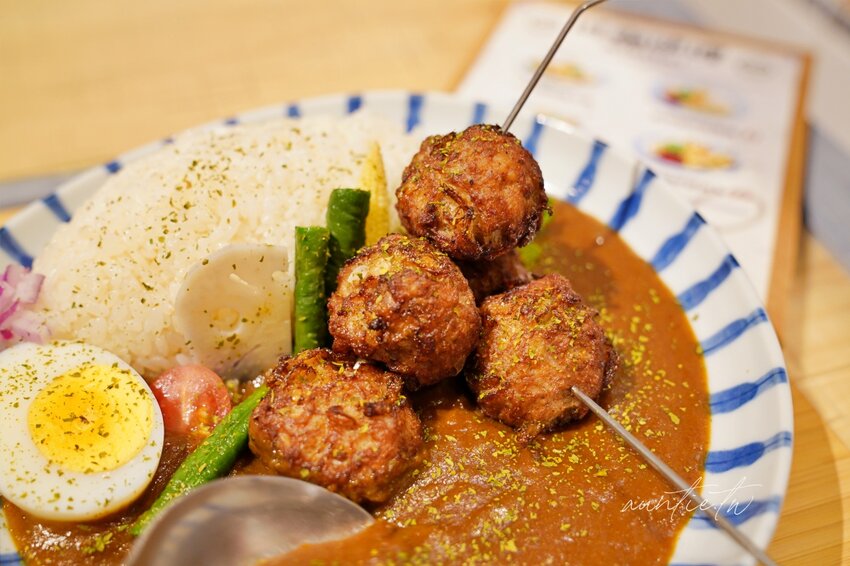 日式咖哩吃起來是溫潤的咖哩味,不過還是有一點刺激味蕾的一咪咪辣度,不過平常愛吃辣,對我來說是很溫和的,咖哩本身就很夠味,餐具旁有辣油可以添加。豬肉丸不得了,非常好吃,吃起來沒有腥味,而且咬下去的口感好軟嫩,豬肉丸的調味很棒,搭上清爽解膩的小菜韓式泡菜與日式蘿蔔,還有大杯的古早味紅茶,整體來說每一樣都很有水準耶!