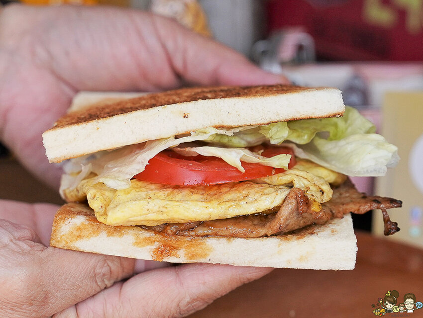 比漢堡還要大份量的 阿嬤養的雙層起司總匯吐司,三片碳烤吐司