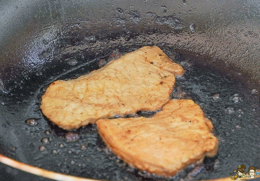 燒肉油煎的時間剛剛好,加上使用溫體豬肉製作,保有豬肉本身的香甜新鮮度