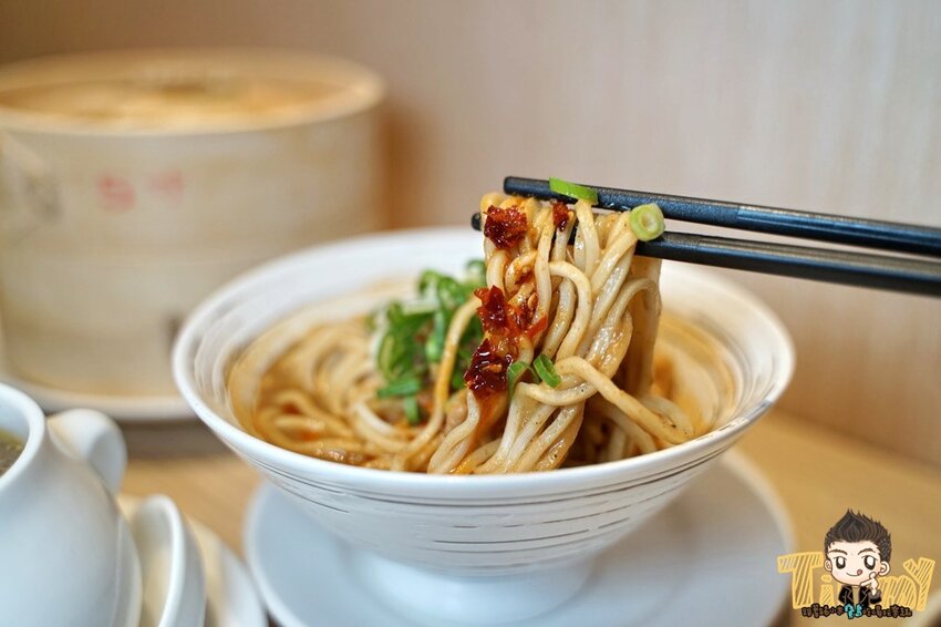 擔擔麵(90元)是小辣的風味,不吃辣的朋友可以點蔥油拌麵(90元)。