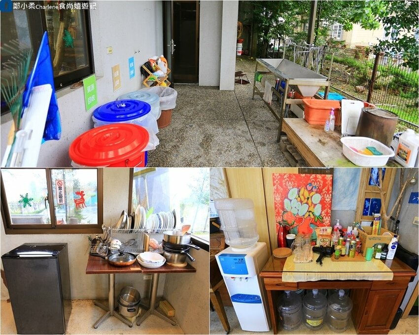 ▼餐廳旁有洗手台、洗碗精、菜瓜布和資源回收區,烤肉夾就放在水龍頭旁。
