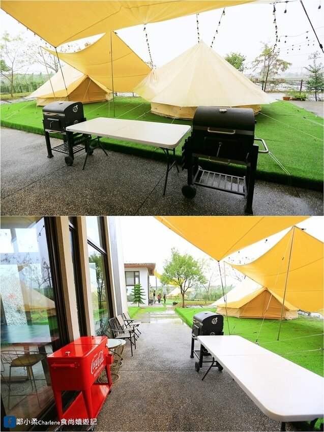 大餐廳旁邊就是後庭院,也就是帳棚設置區,美式烤肉爐就放在這裡,