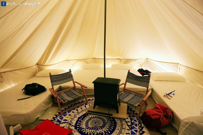 主打免裝備豪華露營,五個帳篷(滿場七帳,每帳最多住四人)就能輕鬆包場,