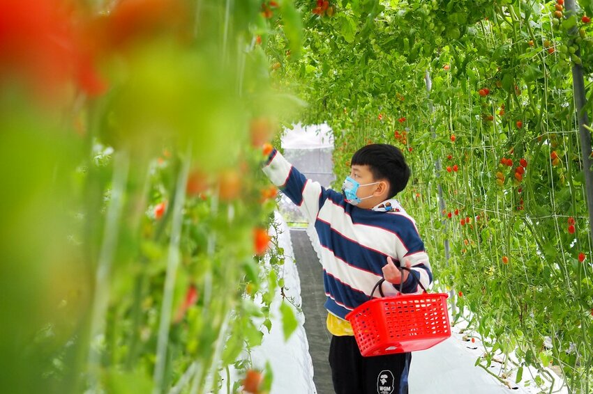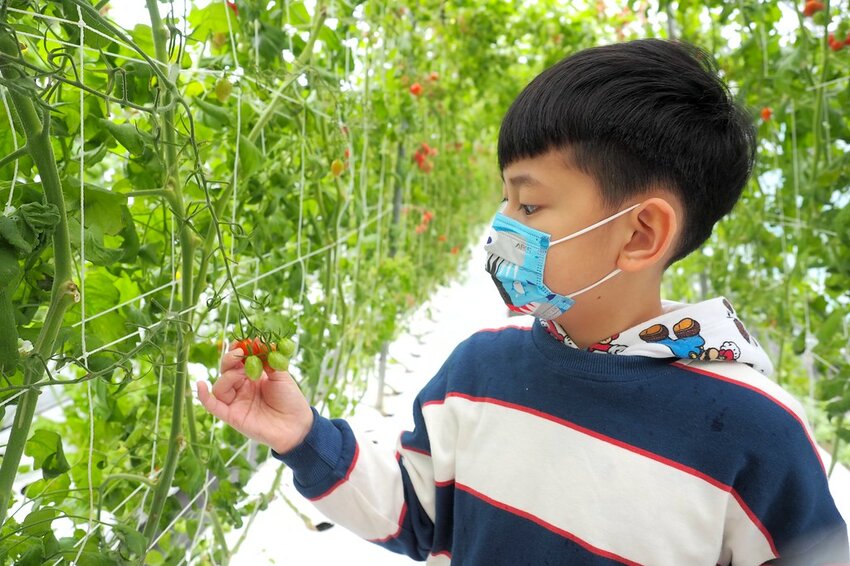 採完草莓之後我們接著又到隔壁的番茄溫室去採小番茄