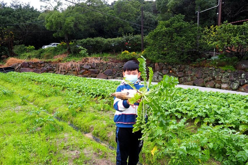 平常很怕髒的小孩超難得抱著白蘿蔔給媽媽拍了好幾張,直說好好玩呢!!!