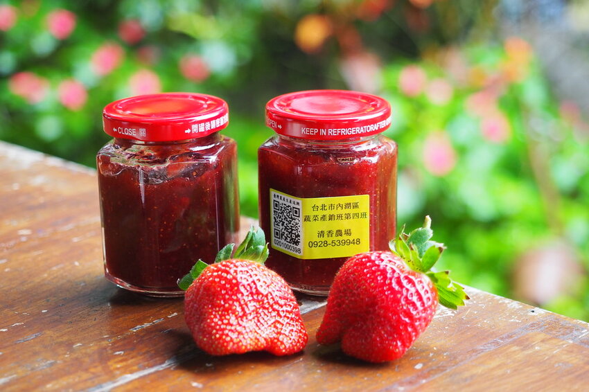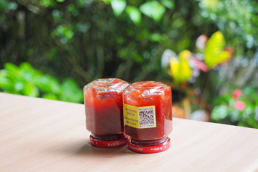 老闆娘說他們家的草莓果醬非常實在,使用的是上一季零下22 ℃急速冷凍的草莓