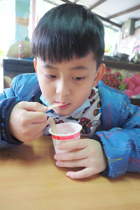 內湖一號草莓果然厲害,酸甜香氣相當迷人,球哥不用沾煉乳一樣吃得嚇嚇叫