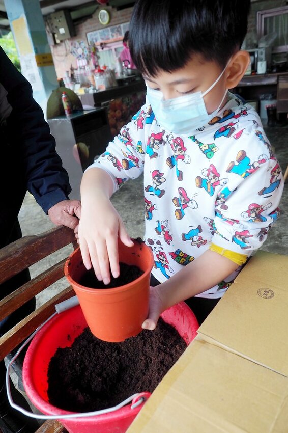 盆栽DIY的流程還蠻簡單的,首先在器皿裡填滿肥料土
