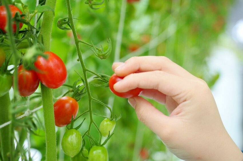 而是兩隻手指頭捏住番茄之後稍微旋轉拿下即可