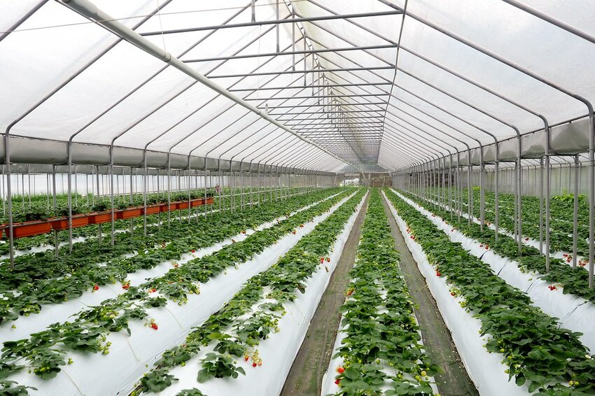 沿著小徑往下走右手邊就是溫室草莓園和番茄園