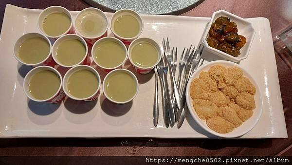 用完餐點後最後會附上甜點的部分,甜點部分是擂茶和麻糬,我覺得他們的擂茶蠻好喝的,雖然只用了一個小紙杯裝,但是對吃飽飽的我們而言份量剛剛好,麻糬的部分也是切成小塊沾上花生粉大家一人一口很快就瞬間掃光還有梅子可以望梅止渴一下~