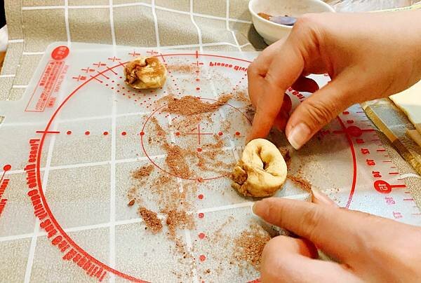 我們做的是迷你肉桂捲以及一口蘇巧克力捲!雖然是首次做肉桂與巧克力捲,但是成品的口感真的可以媲美在烘焙麵包店買的喔~