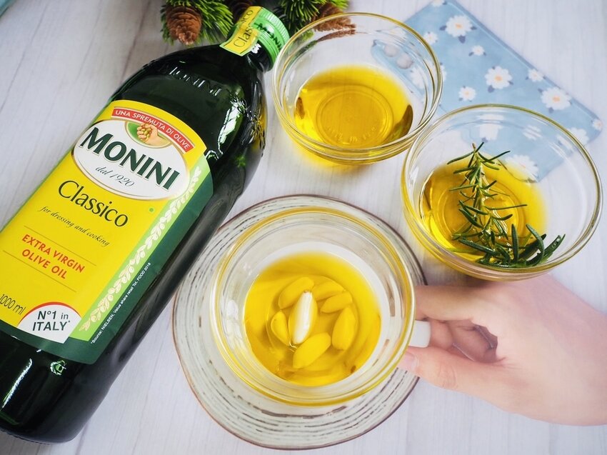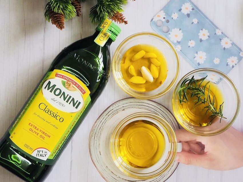 食材:MONINI初榨橄欖油、蒜頭、法式麵包