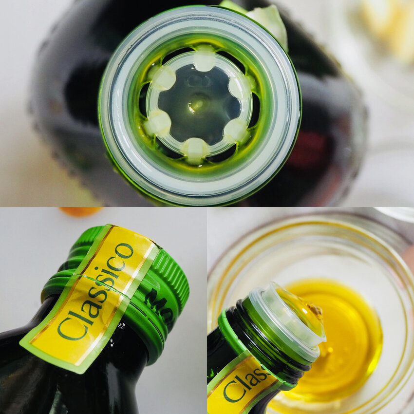 瓶口設計的很完善,瓶口倒出油時不會溢出。