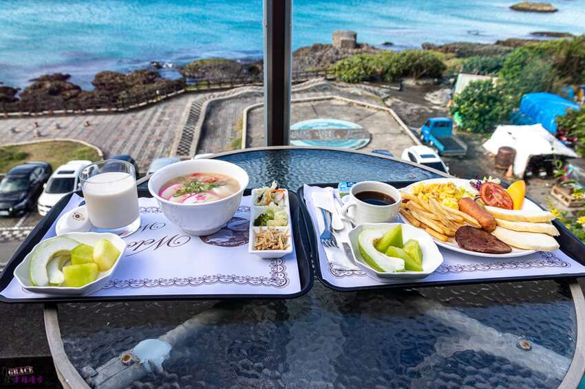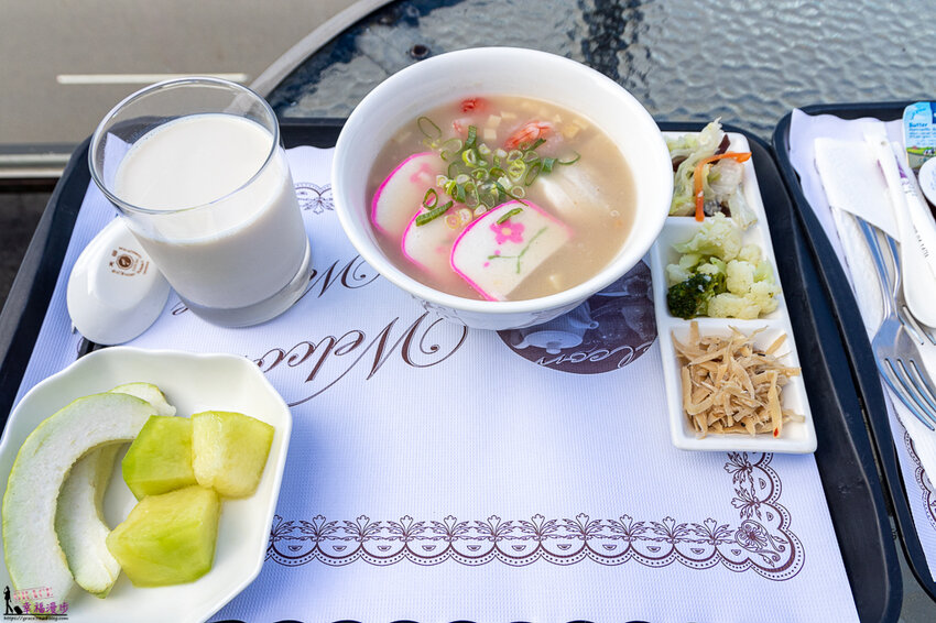 第二天早上最期待的就是民宿早餐,民宿早餐是前一天約好時間會送到房間來,有著中式鮑魚粥和西式早餐兩種選擇喔!
