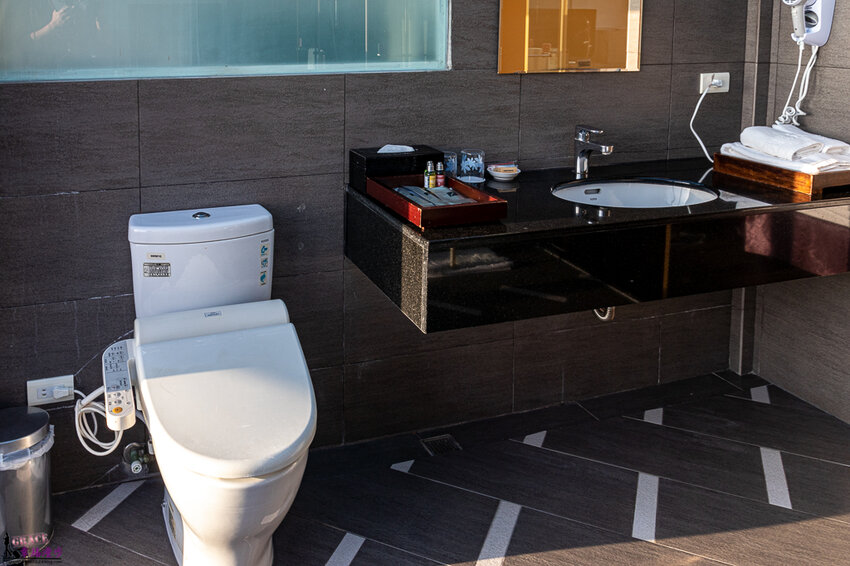 另一側是高級的免治馬桶,喜歡這種寬敞檯面的洗手台,要放置些瓶瓶罐罐的保養品也比較方便。