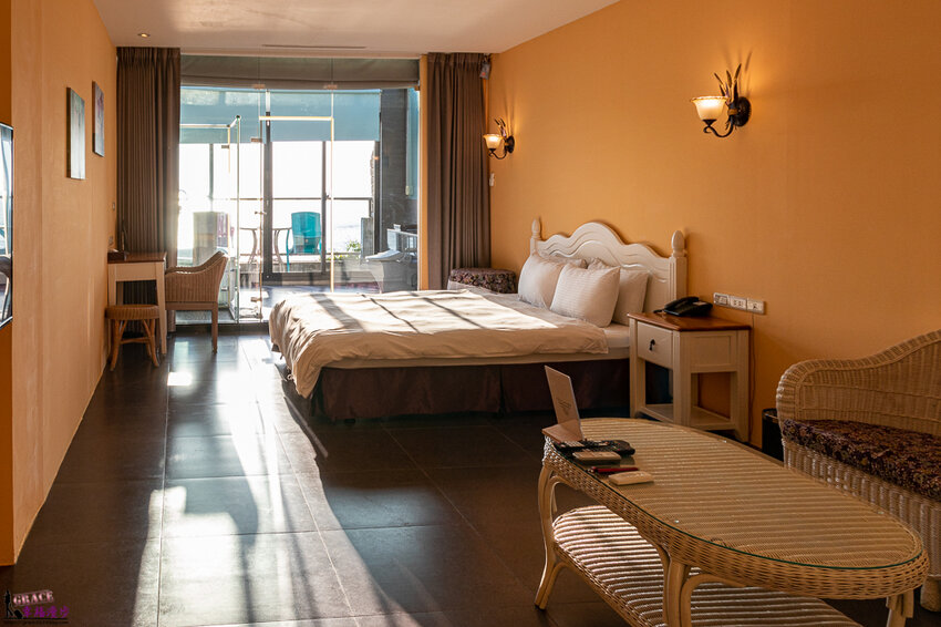 辦理好入住手續後民宿人員帶領我們到房間來,我們這次入住的是天窗雙人間,這房間也太寬敞了,整個房間是以暖色系去裝潢,感覺就是很溫暖又熱情,呈現出南島度假氛圍。