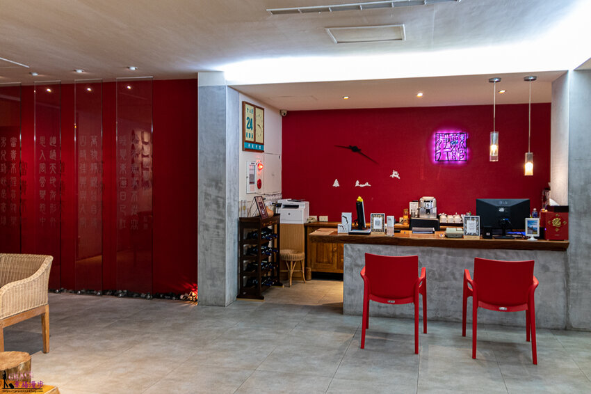 整個接待大廳超寬敞,接待的櫃台有著一整面的紅色牆,另一側的牆面有著詞句整體相當雅緻。