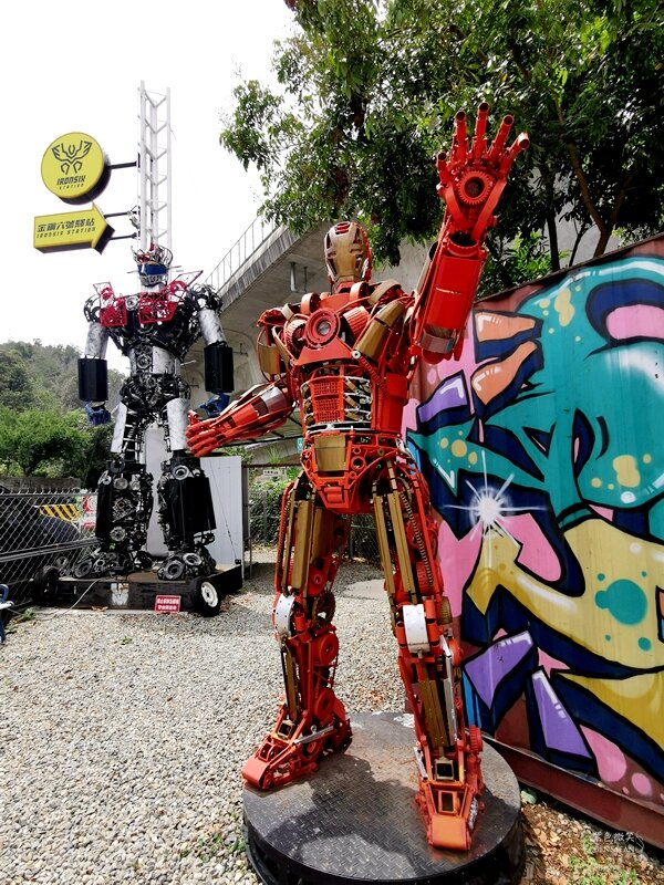 金鋼六號驛站滿滿的機器人大集合!! 大黃蜂、無敵鐵金剛、鋼鐵人、鋼彈~~創作者利用亳不起眼的廢棄鋼鐵零件,打造精采的機器人園區(金鋼六號驛站),身在其中感覺下一秒這些巨大雄偉的機器人就會動了起來,真的好精采