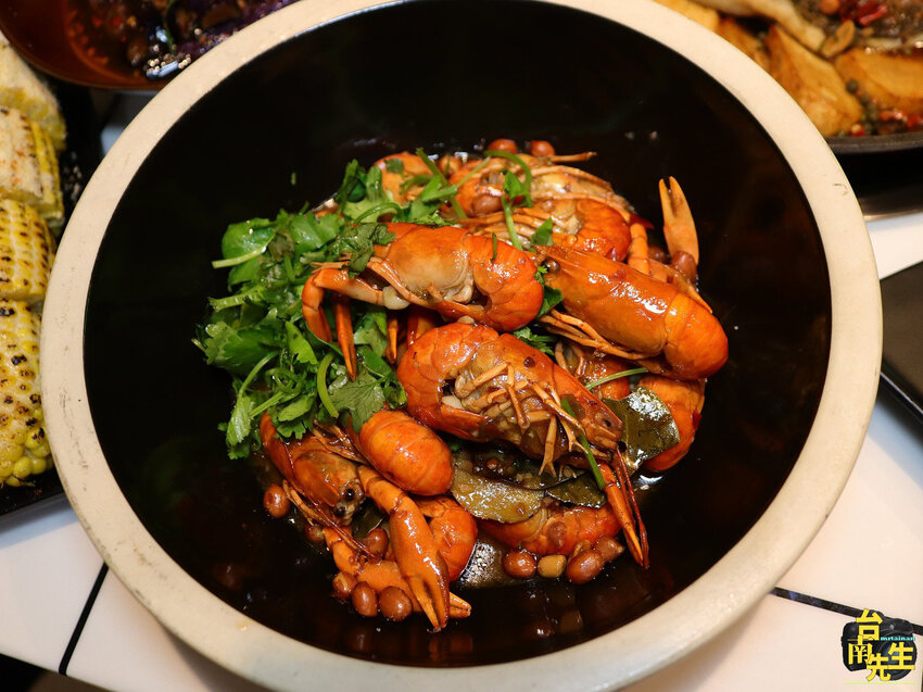 點烤魚加購小龍蝦有優惠價,選用台灣養殖的澳洲螯蝦品種,肉質飽滿鮮甜。不會剝小龍蝦的人可以請店員示範