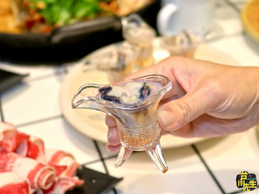 一口蠔飲:鮮美肥嫩的生蠔搭配酒醋,另外即日起至2022/2/28,到店家FB參加情人節活動,就招待一口蠔飲1份