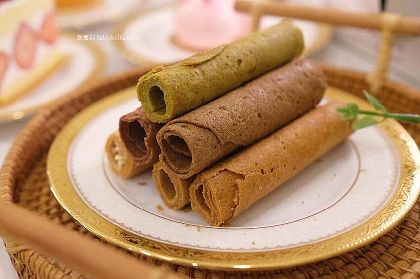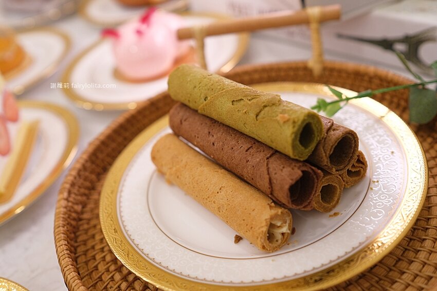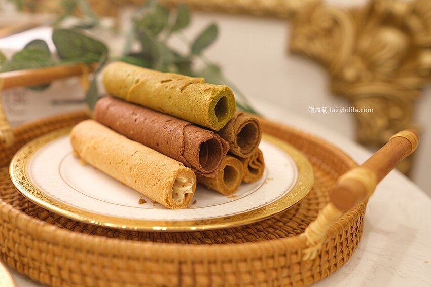 而柚香金萱算是一款我覺得很特別的組合,除了帶有果香之外,還有一股金萱茶帶來的圓潤感,而皇家伯爵則可以充份享受伯爵茶蘊含的茶香,不同於市面上手工蛋捲都是偏鬆散型,它們家的口感咬起來則是比較酥脆的。