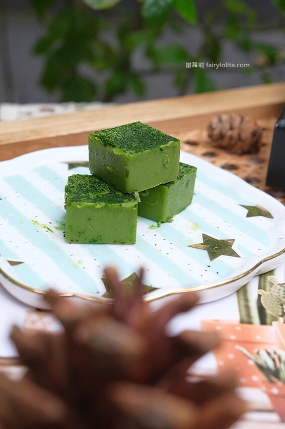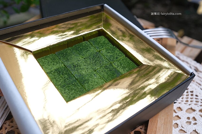 它的質地順滑細緻,一入口就像直接融化在舌尖上,連不愛吃甜點的洪先生也說這款超好吃,如果要我形容,我會說它「質感溫潤如絲絨」,抹茶後韻回甘,愛吃生巧的朋友有機會一定要試試看!:)