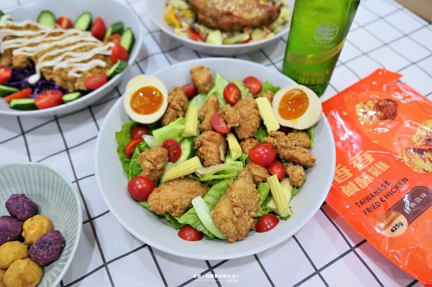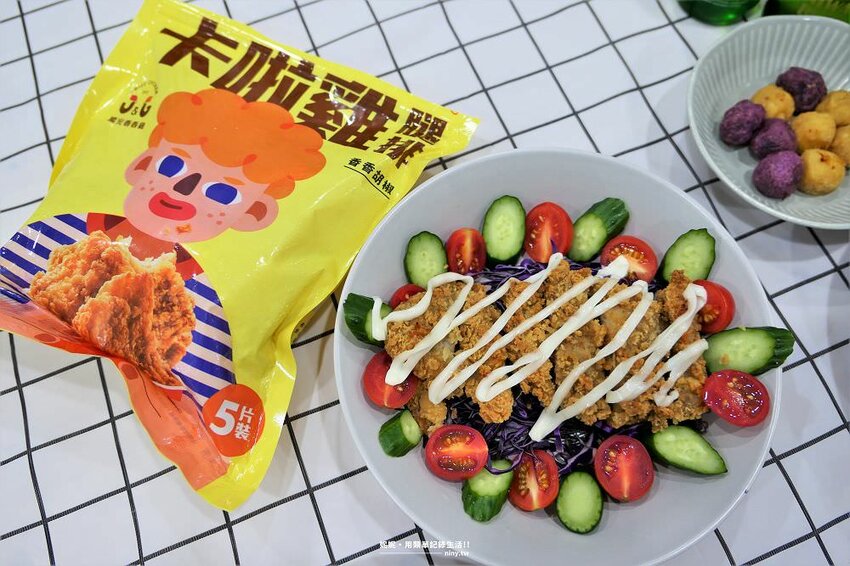 料理方式也很簡單,只要有氣炸鍋的話都可以調理,而且烹調前都不需要解凍,可直接依上包裝上的調理方式調理,像我們這次全部使用氣炸鍋下去處理,搭配其他食材製作成兩三樣菜,真的快速又方便,過年將至,也很推薦使用香香雞做創意年菜,來個最香的氣炸鍋炸雞料理。