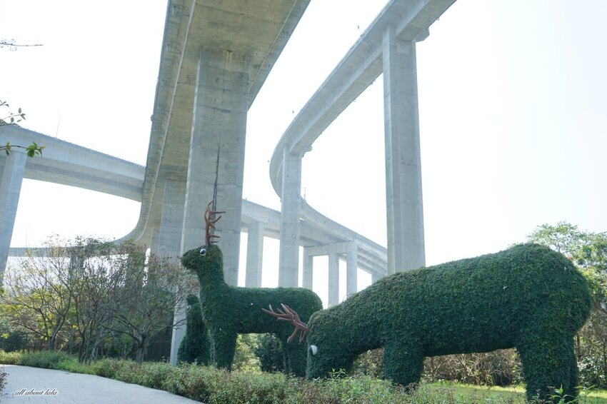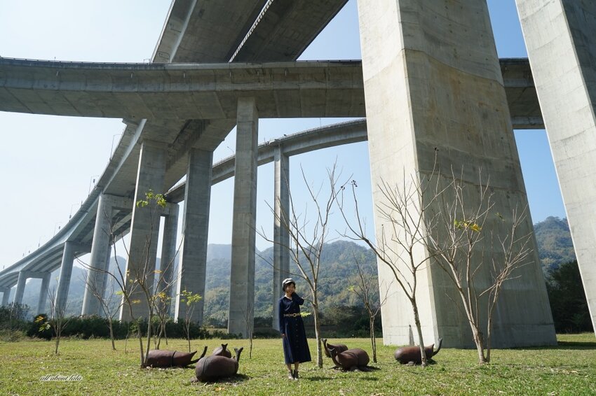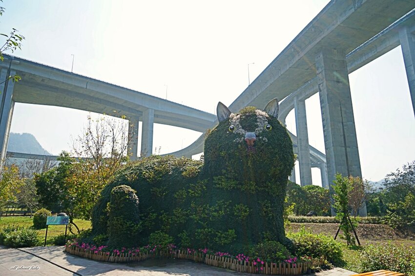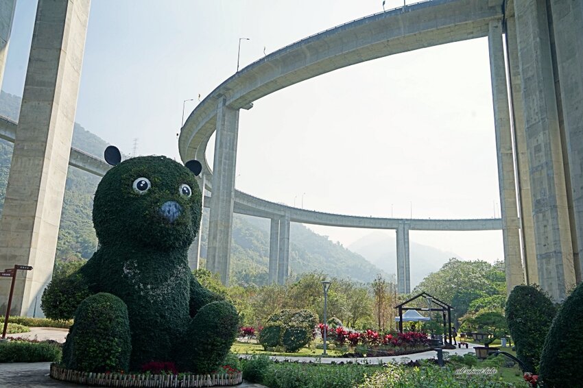南投國姓新景點- 橋聳雲天綠雕園區。國6國姓交流道的「橋聳雲天」以69支墩柱支撐,均高55米,最高處70米,匝道線形優美而獲選為「公路八景之首」。南投縣政府為此規畫融合綠地、自然林、遠山和匝道主體等地景打造為「綠雕園區」,大型的綠雕植栽很可愛。目前免門票,二月假日結合當地資源舉辦小農市集,打卡還送香草植物,很適合三五好友或一家大小一同來踏青喔!