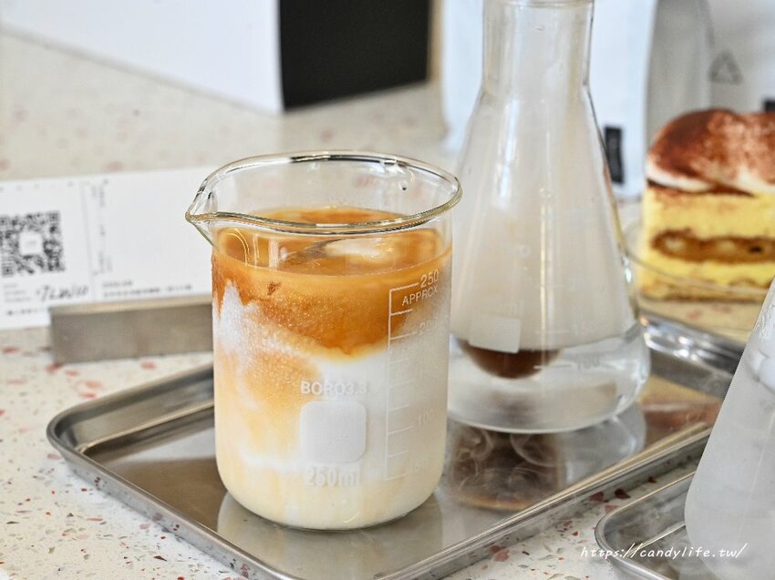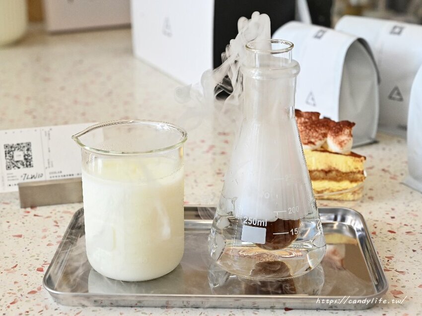 這間255LAB真的好特別,以實驗室為主題,採用試管及燒杯來盛裝,上桌時還會冒煙,只要點咖啡系列軍可以自己選擇想要的咖啡豆種,除了咖啡,店裡頭也有販售手作甜點,每日限量供應,美味甜點配上嘎逼絕配~
