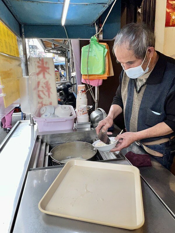 老闆已經賣了數十年的豆花,