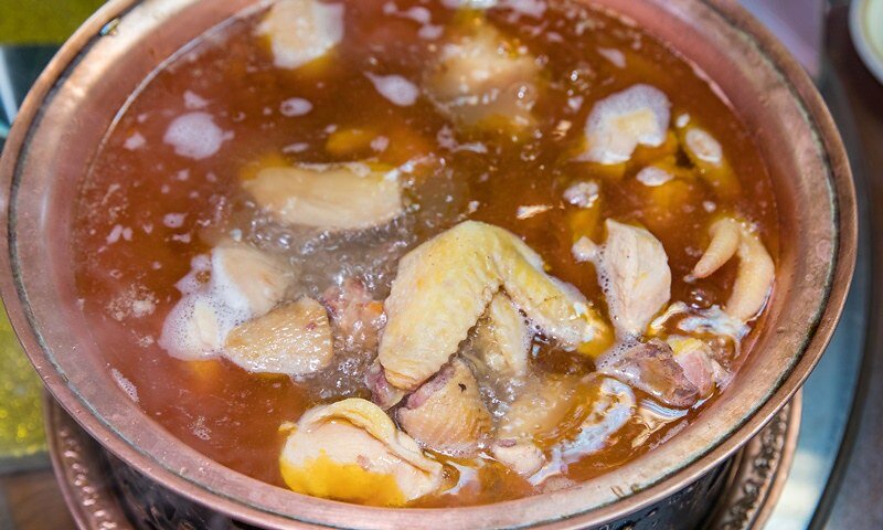 酒香相對微濃的麻油雞,特色是薑味特別明顯,湯中隨便一撈都是我以為杏鮑菇的超大塊老薑,還帶點枸杞等中藥的微甜,雞肉雖然不多但燒得非常入味。