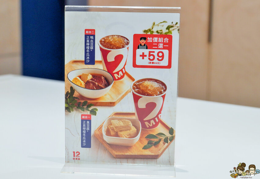 兩款加價組合餐點可挑選:鴨血豆腐+正直檸檬冬瓜冰沙、臭豆腐+正直檸檬冬瓜冰沙