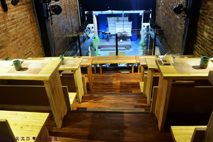 從舞台區,往座位區看過去,共有一二樓用餐座位.