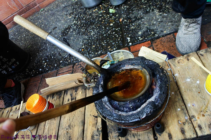 一直攪拌,然後店家會加入小蘇打粉之後,瞬間膨脹,這時手勢要抓準哦!