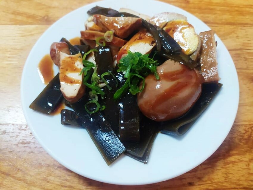 本來沒打算點滷味的我們,還是禁不起大竹籮的誘惑,夾了幾片豆乾海帶和滷蛋